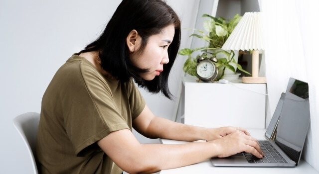 長時間のパソコン作業で姿勢が崩れ、肩こりと頭痛がひどく悩んでいました。